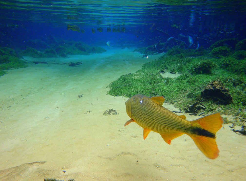 Longe da margem é onde eles preferem ficar. Sempre ficam em grupos pequenos, por volta de 3 ou 4 peixes, numa distância razoável. Se o local onde você irá pescar tiver alguma região onde há mais correnteza, é muito provável que ali haja algum Dourado por perto. A melhor chance para fisgar um Dourado será na correnteza, longe da margem, ou no meio dos lagos.